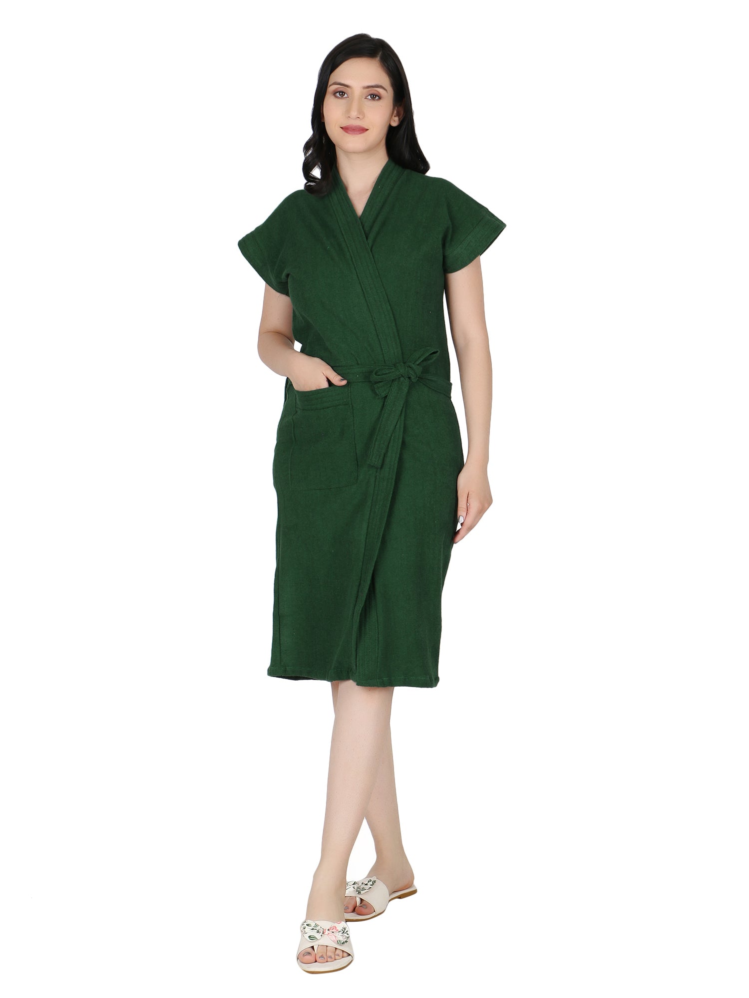 Soft & Absorbent Bathrobe for Women – Comfortable Spa & Lounge Wear (Drk Green)